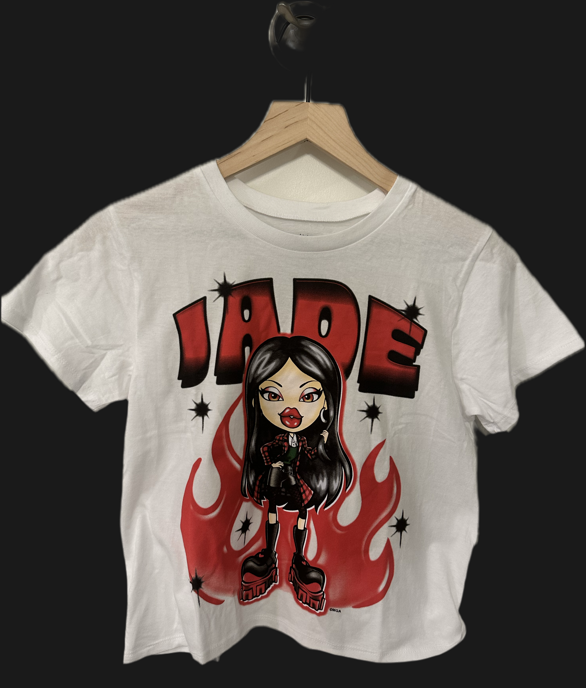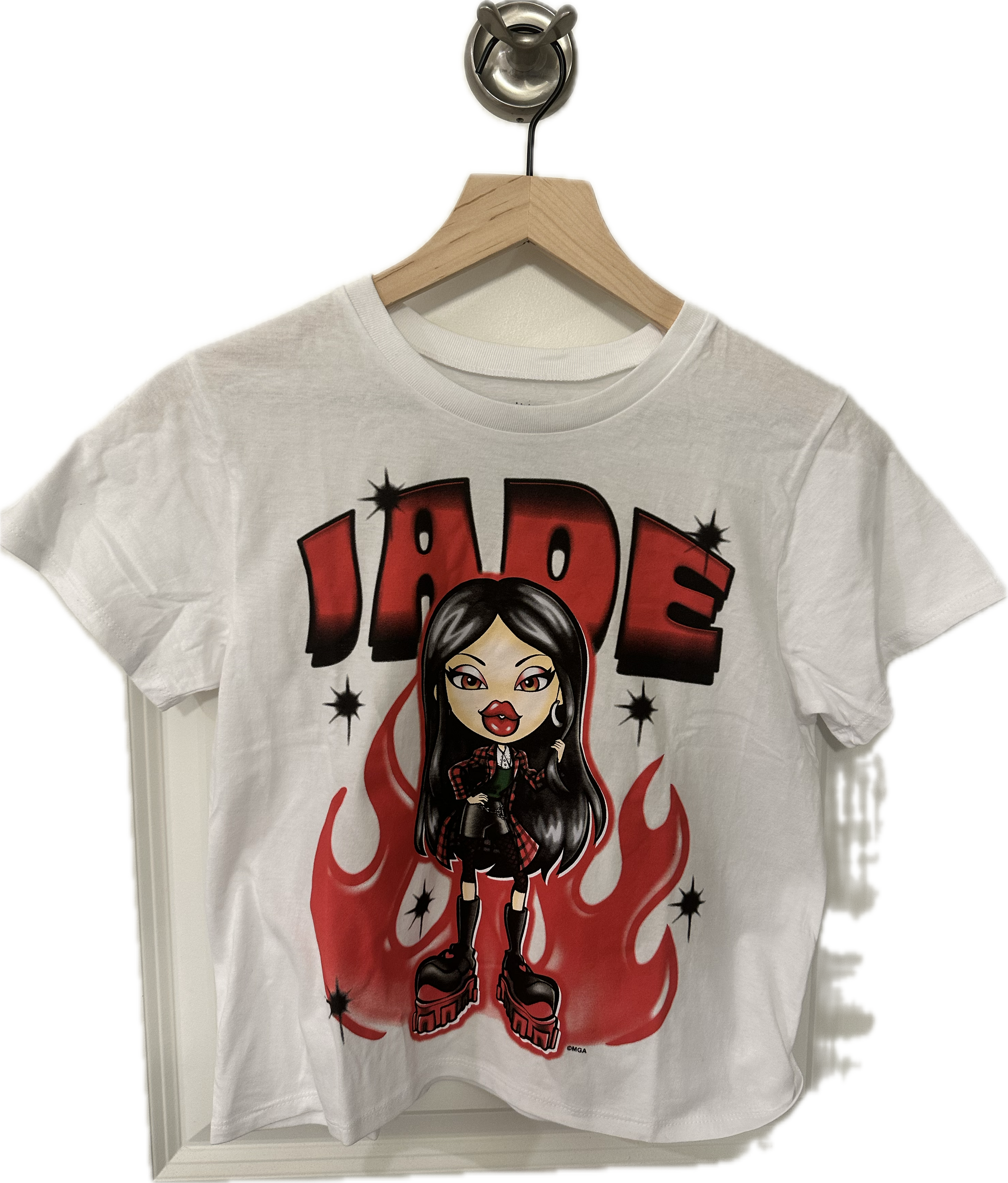 Unleash your inner fashionista with our Bratz Cropped T-Shirt! This white t-shirt features the iconic Bratz character Jade and is perfect for any trendy outfit. Show off your unique style and make a statement with this must-have piece. Grab yours now and stand out from the crowd!